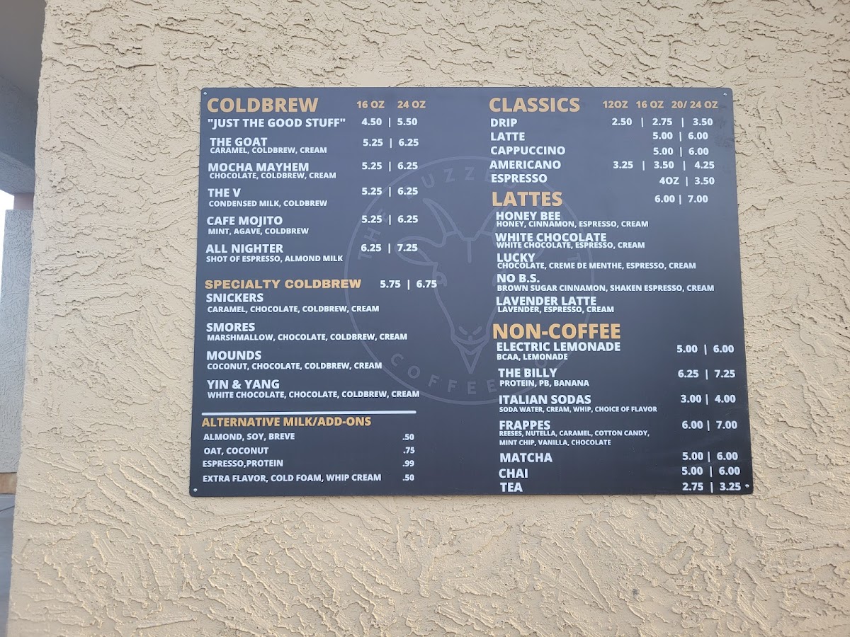 Welcome to The Buzzed Goat Tempe, where your coffee experience is set to a higher standard! Nestled in Tempe, AZ, this local gem has quickly gained a reputation for its exceptional cold brews and friendly service. The menu showcases innovative drinks like the Cafe Mojito and iced americanos that balance flavor without being overly sweet, a feat not easily mastered by many. Patrons rave about the quality of their traditional coffees and unique twists, like mochas made with chocolate milk, ensuring every sip is delightful.